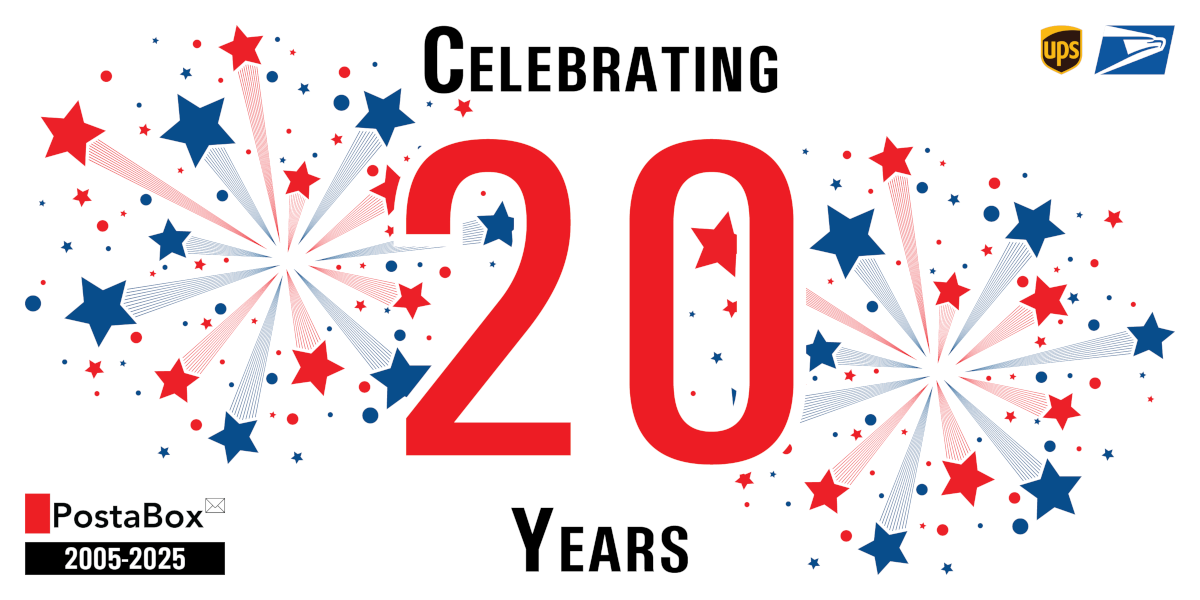 Celebrating 20 years. Every 20th in-store customer will save 20% off their purchase at PostaBox. USPS goods and services not included with offer.